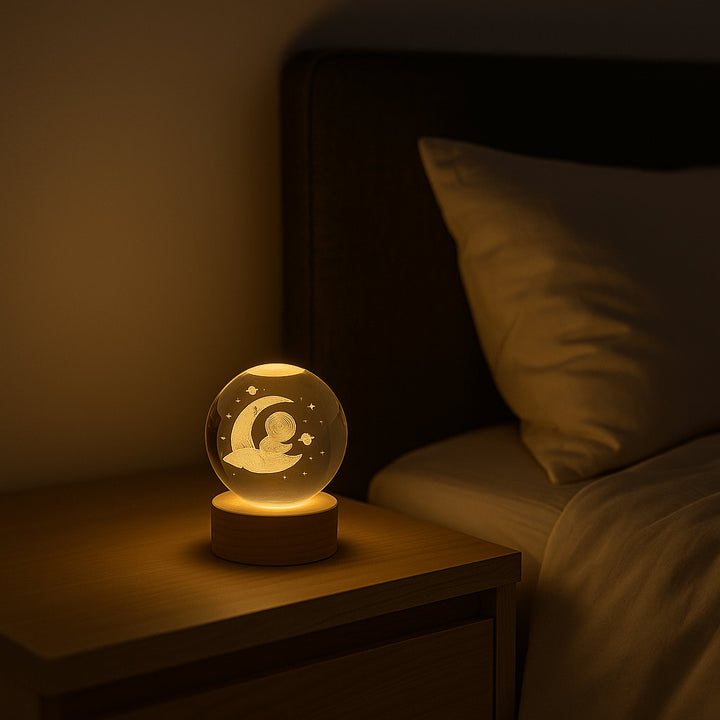 Iluminá tus espacios con el Velador Esfera de Cristal 3D Aural™ – Astronauta en la Luna.